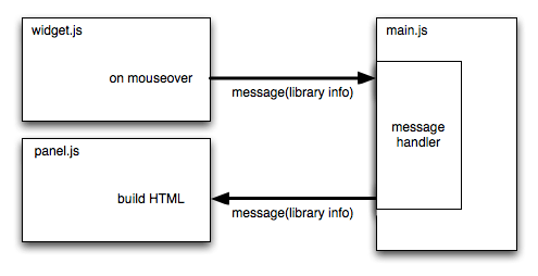 Finally main.js relays the library information from the widget to the panel: