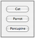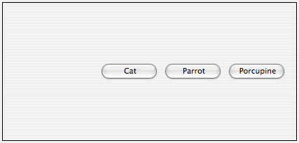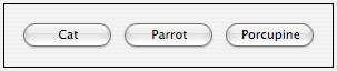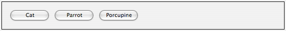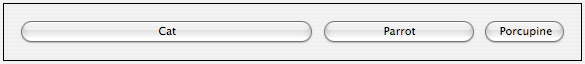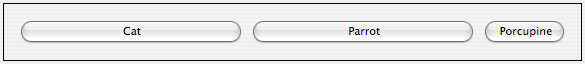 <hbox> <button label="Cat" /> <button label="Parrot" /> <button label="Porcupine" /> </hbox>