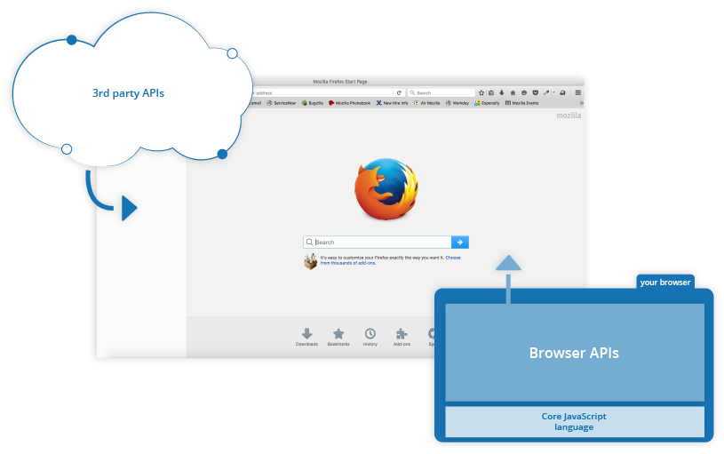 - Browser APIs — constructs built into the browser that sits on top of the JavaScript language and allows you to implement functionality more easily.