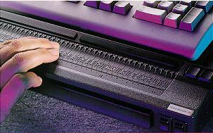 - Provides access to printed words, graphics and on-screen information by means of an array vibrating pins the size of an index finger. The user uses one hand to read the vibrating pins, and the other hand moves a mini-camera over the material to be read. Unfortunately, the unit is not currently produced, although there is occasional talk of resurrecting this useful device.