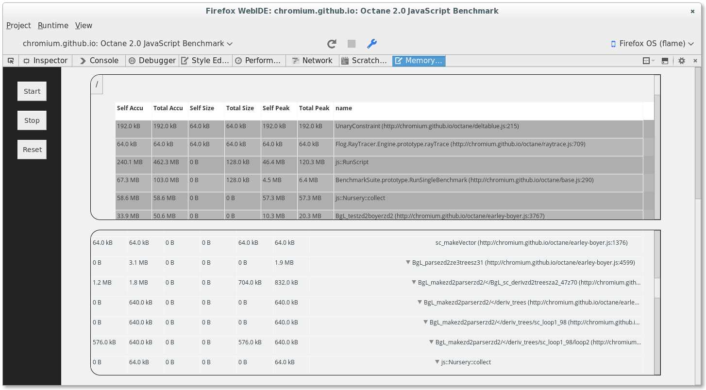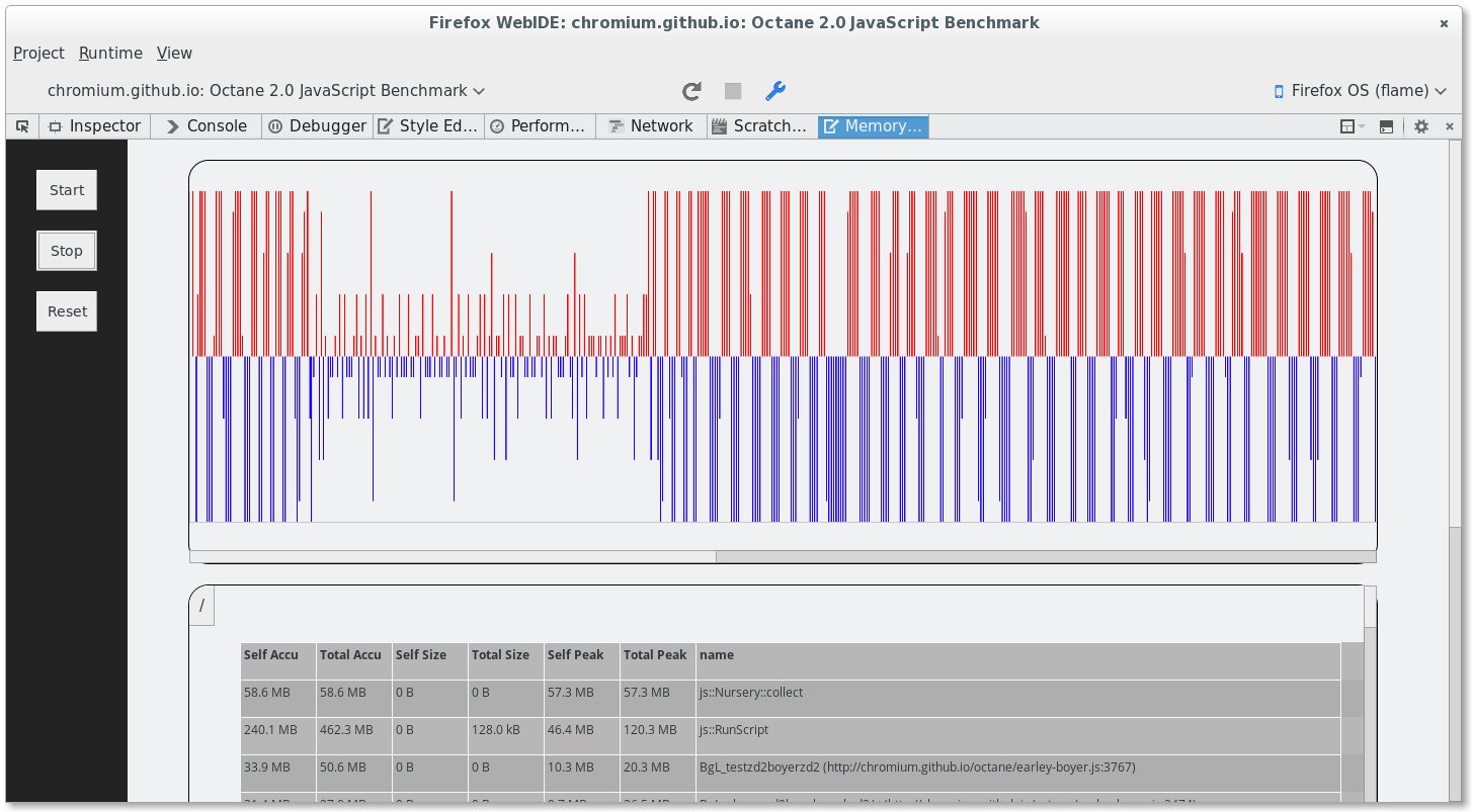 Firefox Developer Tools now has a built-in memory profiler. This article details how to use an old profiler specifically designed for Firefox OS devices.