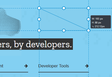 When you hold the mouse button down and then drag, you'll start to draw a rectangle, with its x, y, and diagonal dimensions displayed. The units are in pixels.