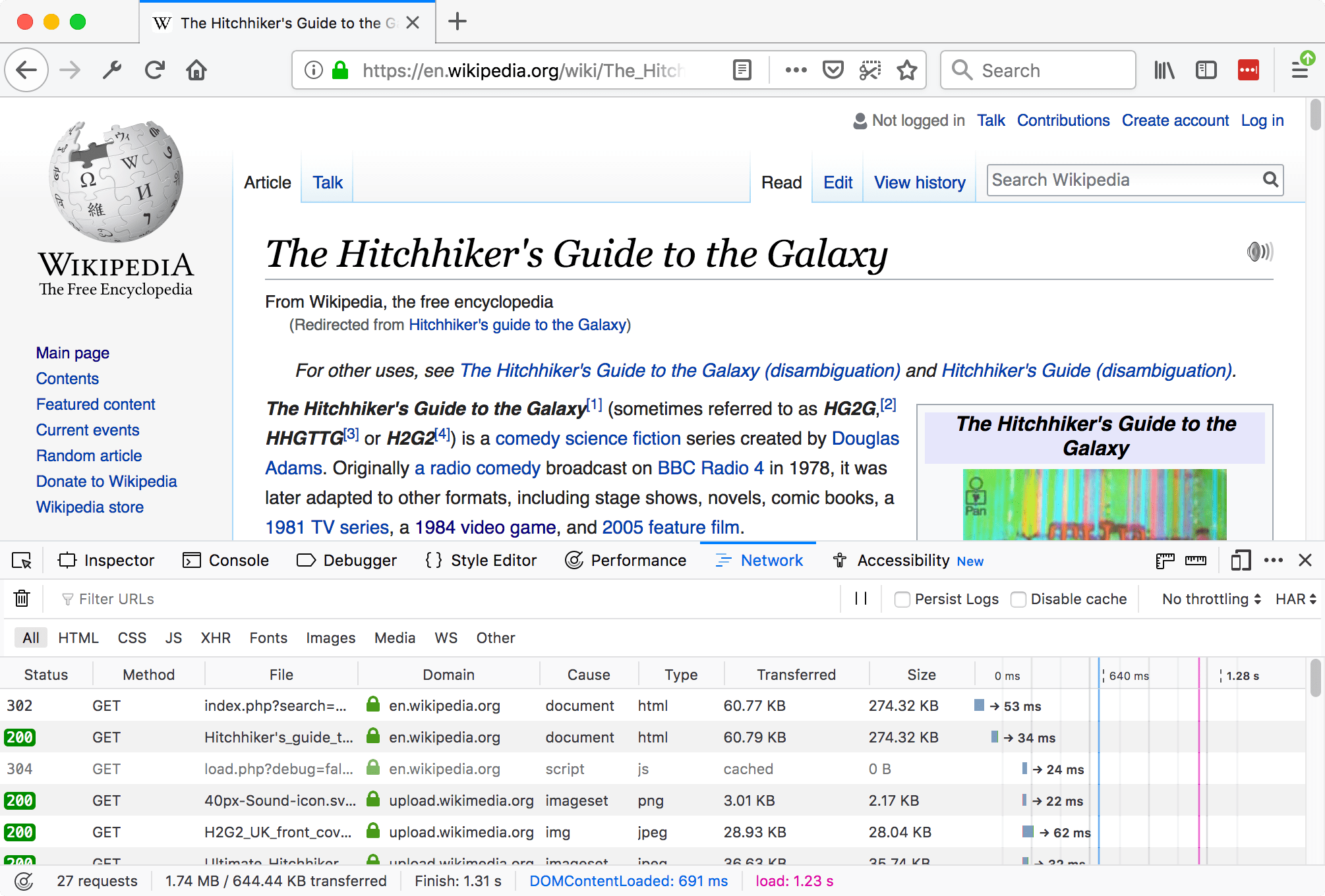 The Network Monitor shows you all the network requests Firefox makes (for example, when it loads a page, or due to XMLHttpRequests), how long each request takes, and details of each request.