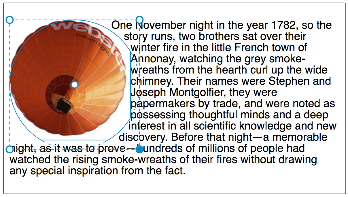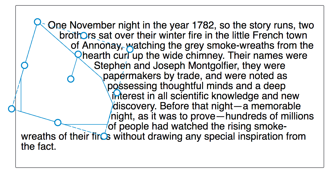 - A solid line shows the outline of the shape that is wrapping the text. This is your shape. If the shape is clipped by the margin box then the margin box will make up part of this line.