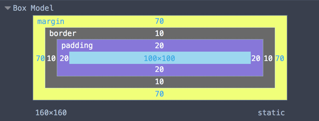 When an element's selected, you can get a detailed look at the box model in the Box Model view: