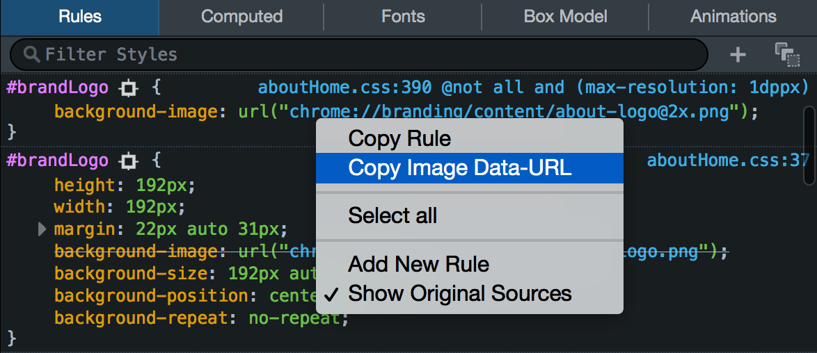 From Firefox 41, if you right-click the image declaration, you'll see an option to copy the image as a data: URL:
