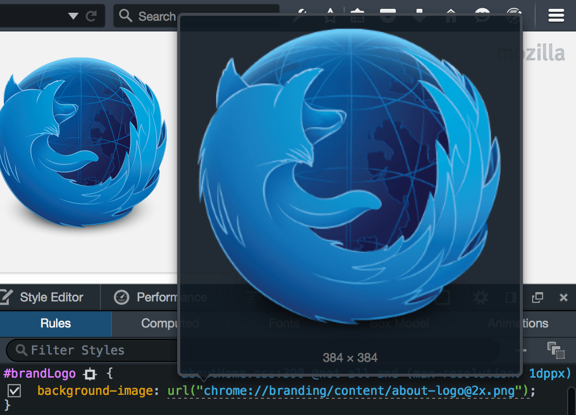 In the Rules view, you can see a preview of images specified using background-image. Just hover over the rule: