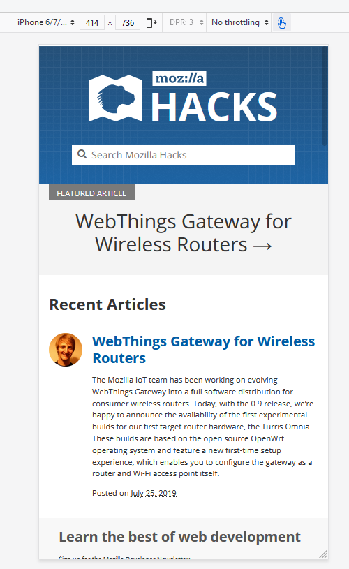 Note: The device you select when in Responsive Design Mode and the orientation (portrait or landscape) is saved between sessions.