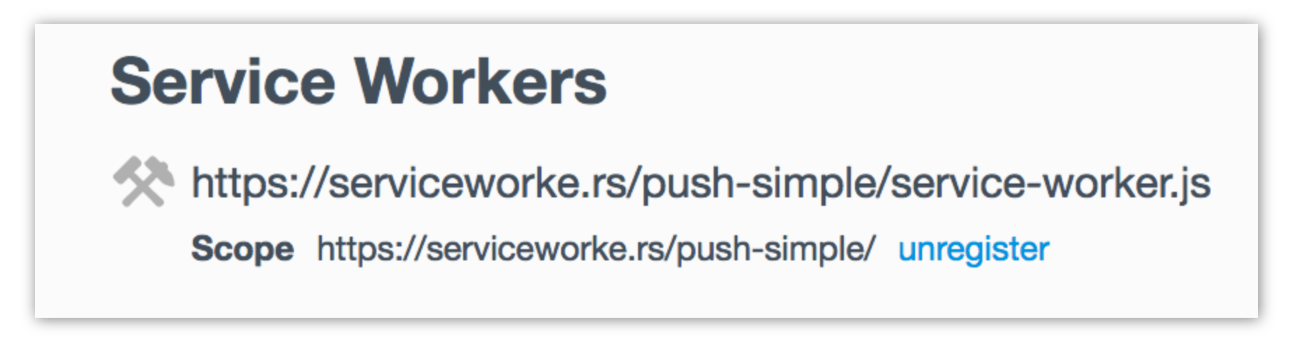 This section uses a simple ServiceWorker demo, hosted at https://serviceworke.rs/push-simple/.