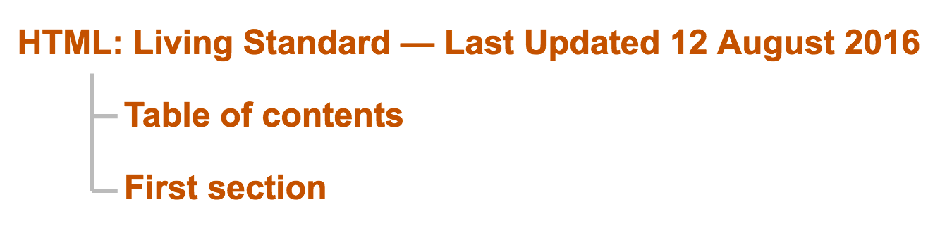 That is, the rendered outline might show the primary title, HTML, followed by the secondary title shown in parentheses: (Living Standard — Last Updated 12 August 2016).