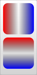 The <linearGradient> element also takes several other attributes, which specify the size and appearance of the gradient. The orientation of the gradient is controlled by two points, designated by the attributes x1, x2, y1, and y2. These attributes define a line along which the gradient travels. The gradient defaults to a horizontal orientation, but it can be rotated by changing these. Gradient2 in the above example is designed to create a vertical gradient.