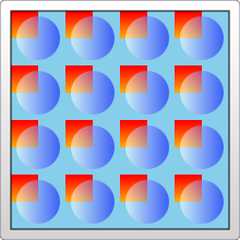 <pattern id="Pattern" width=".25" height=".25" patternContentUnits="objectBoundingBox"> <rect x="0" y="0" width=".25" height=".25" fill="skyblue"/> <rect x="0" y="0" width=".125" height=".125" fill="url(#Gradient2)"/> <circle cx=".125" cy=".125" r=".1" fill="url(#Gradient1)" fill-opacity="0.5"/> </pattern>